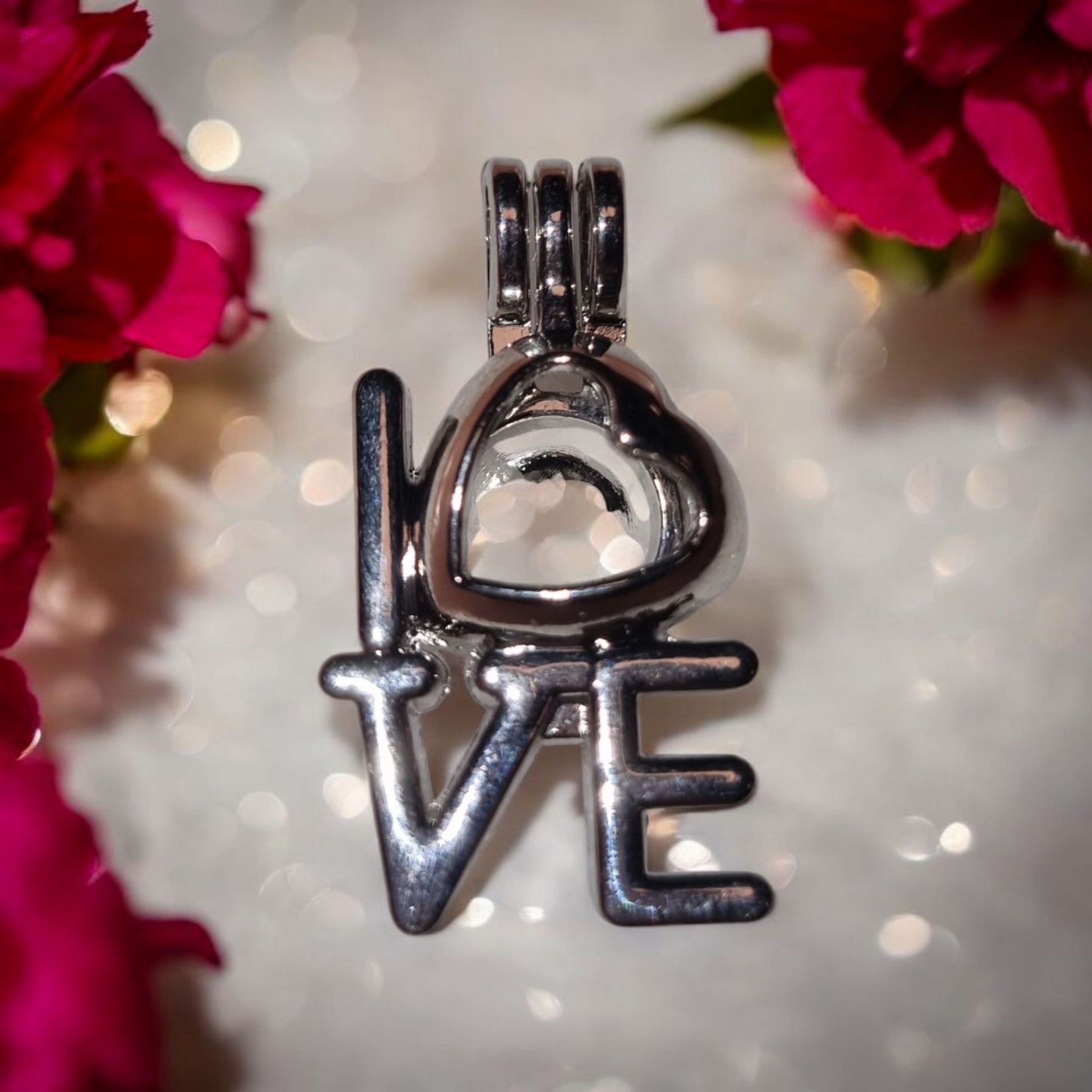 Silver-plated LOVE cage with a silver plated chain. This will come with am oyster opening.